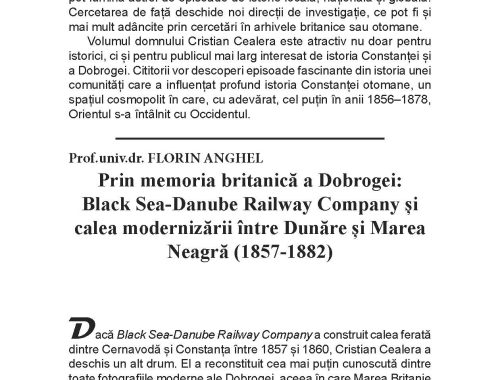 Constantin Ardeleanu ‑ Constanța 1856‑1878. Orientul s‑a întâlnit cu Occidentul (p. 186) Florin Anghel. Prin memoria britanică a Dobrogei: Black Sea Danube Railway Company și calea modernizării între Dunăre și Marea Neagră (1857‑1882)