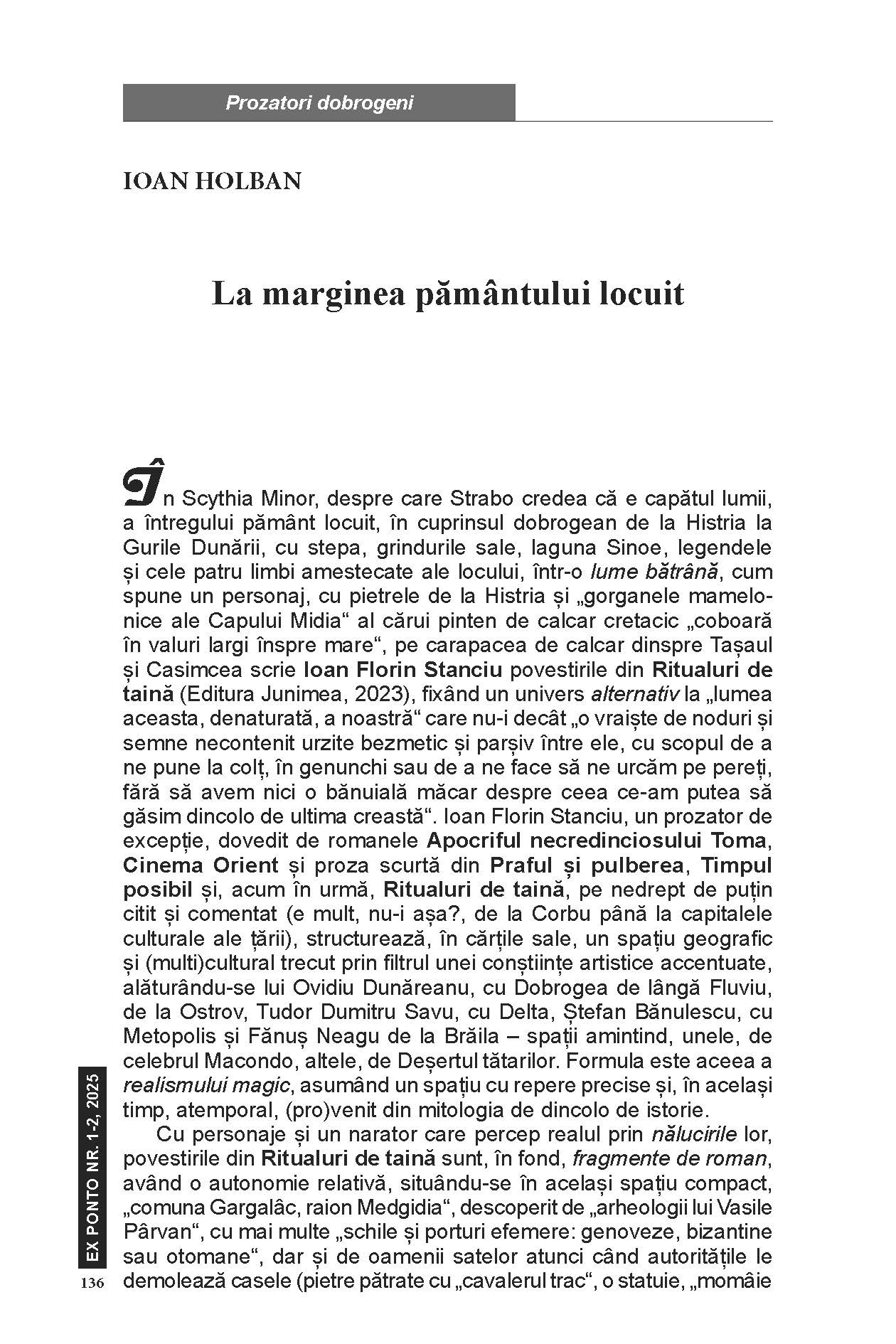 #84-85 iulie 2025, METATEXT, Prozatori dobrogeni Ioan Holban ‑ La marginea pământului locuit (Ioan Florin Stanciu) Anterior Diana Dobrița Bîlea ‑ Ion Roșioru, un „literator“ care merită neuitarea noastră Mai nou Constantin Grigoruță ‑ Gânduri rătăcite printre linii și tușe. Mărturisiri S-ar putea să-ți placă și Cătălin Badea‑Gheracostea ‑ Descoperirea unei căi între fantastic și realism de Florin Giurcă 22 februarie 2026 Tudor Cicu ‑ Viața ‑ spectacol, poetul evocator. (Teo Cobel) 22 februarie 2026 Liviu Lungu ‑ „Păpușa‑n concediu“ ‑ o amplă antologie a poeziei albaneze. Traducere și note de Ioan Topciu și Renata Topciu‑Melonashi 22 februarie 2026 Lasă un răspuns Anulează răspunsulAdresa ta de email nu va fi publicată. Câmpurile obligatorii sunt marcate cu *Nume Email Site web Salvează-mi numele, emailul și site-ul web în acest navigator pentru data viitoare când o să comentez. Comentariu Δ