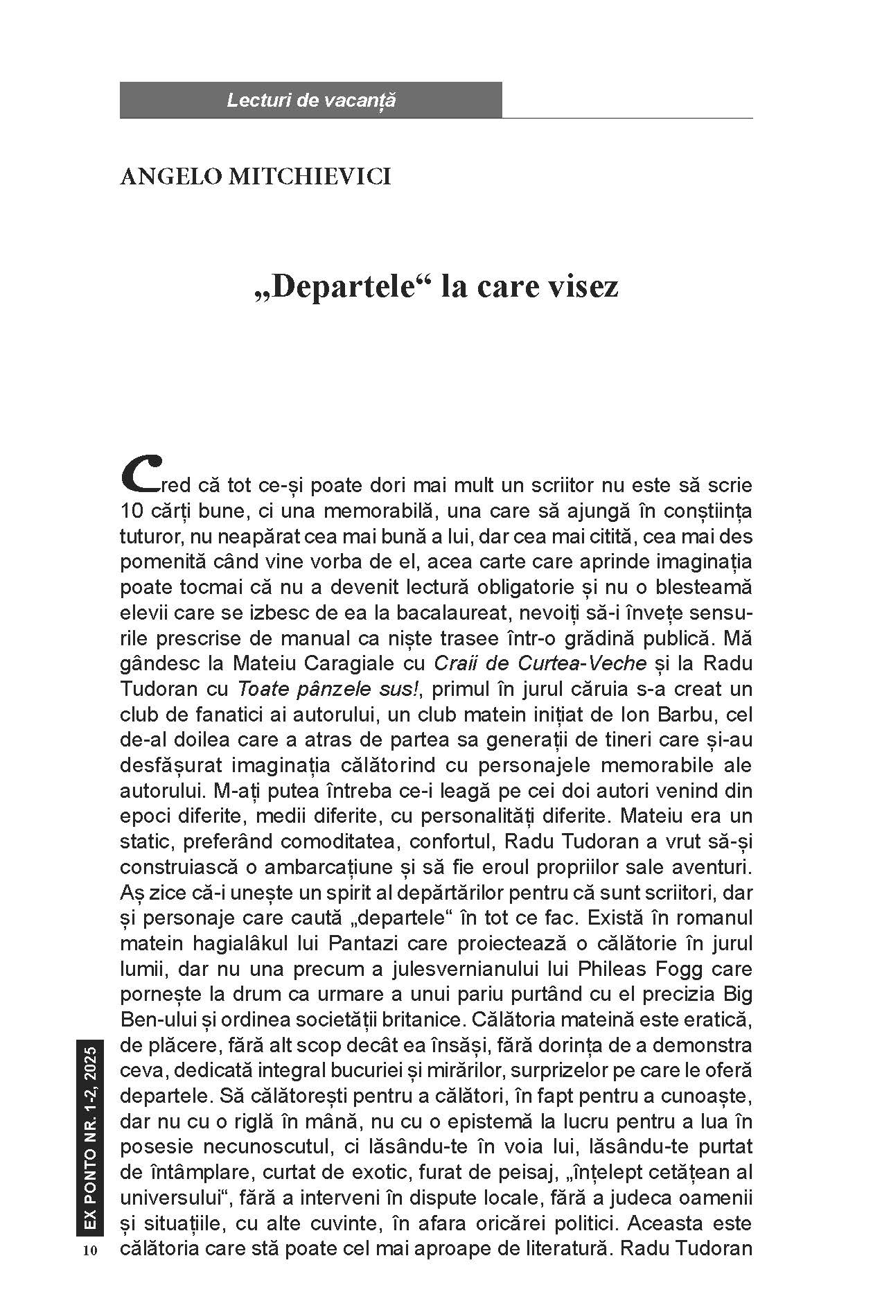 #84-85 iulie 2025, Lecturi de vacanță, TEXT Angelo Mitchievici ‑ „Departele“ la care visez Anterior Lucian Alexiu Mai nou Gheorghe Filip ‑ „Carte frumoasă, cinste cui te vinde“ S-ar putea să-ți placă și Constantin Cheramidoglu ‑ Se filma și în Constanța veche 19 februarie 2026 Constantin Grigoruță ‑ Gânduri rătăcite printre linii și tușe. Mărturisiri 23 februarie 2026 Cosmin‑Darius Misir 24 februarie 2026 Lasă un răspuns Anulează răspunsulAdresa ta de email nu va fi publicată. Câmpurile obligatorii sunt marcate cu *Nume Email Site web Salvează-mi numele, emailul și site-ul web în acest navigator pentru data viitoare când o să comentez. Comentariu Δ