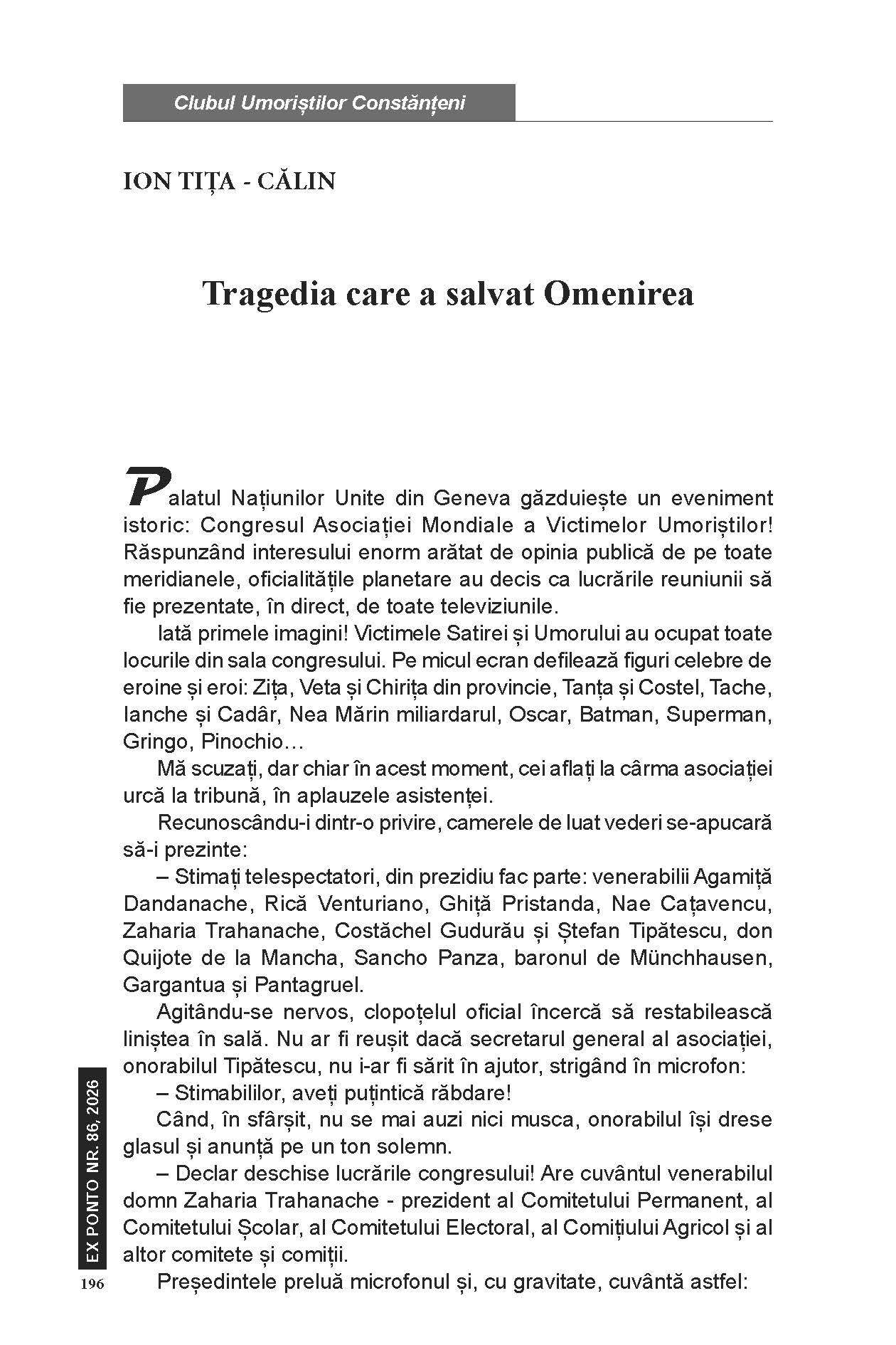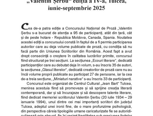 #86 februarie 2026, Clubul umoriștilor constănțeni, METATEXT Ion Tița ‑ Călin ‑ Tragedia care a salvat Omenirea Anterior Reviste și cărți primite la redacție Mai nou Constantin Cheramidoglu ‑ Rolul presei constănțene în popularizarea științei și tehnicii, la sfârșitul sec. XIX și începutul sec. XX. S-ar putea să-ți placă și Ioana Cristina Gurici (Câștigătoarea Premiului „Panait Cerna“). Poezii 26 februarie 2026 George Vidican 28 februarie 2026 Concursul Național de Proză „Valentin Șerbu“, ediția a IV‑a, Tulcea, iunie‑ septembrie 2025 – Bogdan Pascal 26 februarie 2026 Lasă un răspuns Anulează răspunsulAdresa ta de email nu va fi publicată. Câmpurile obligatorii sunt marcate cu *Nume Email Site web Salvează-mi numele, emailul și site-ul web în acest navigator pentru data viitoare când o să comentez. Comentariu Δ