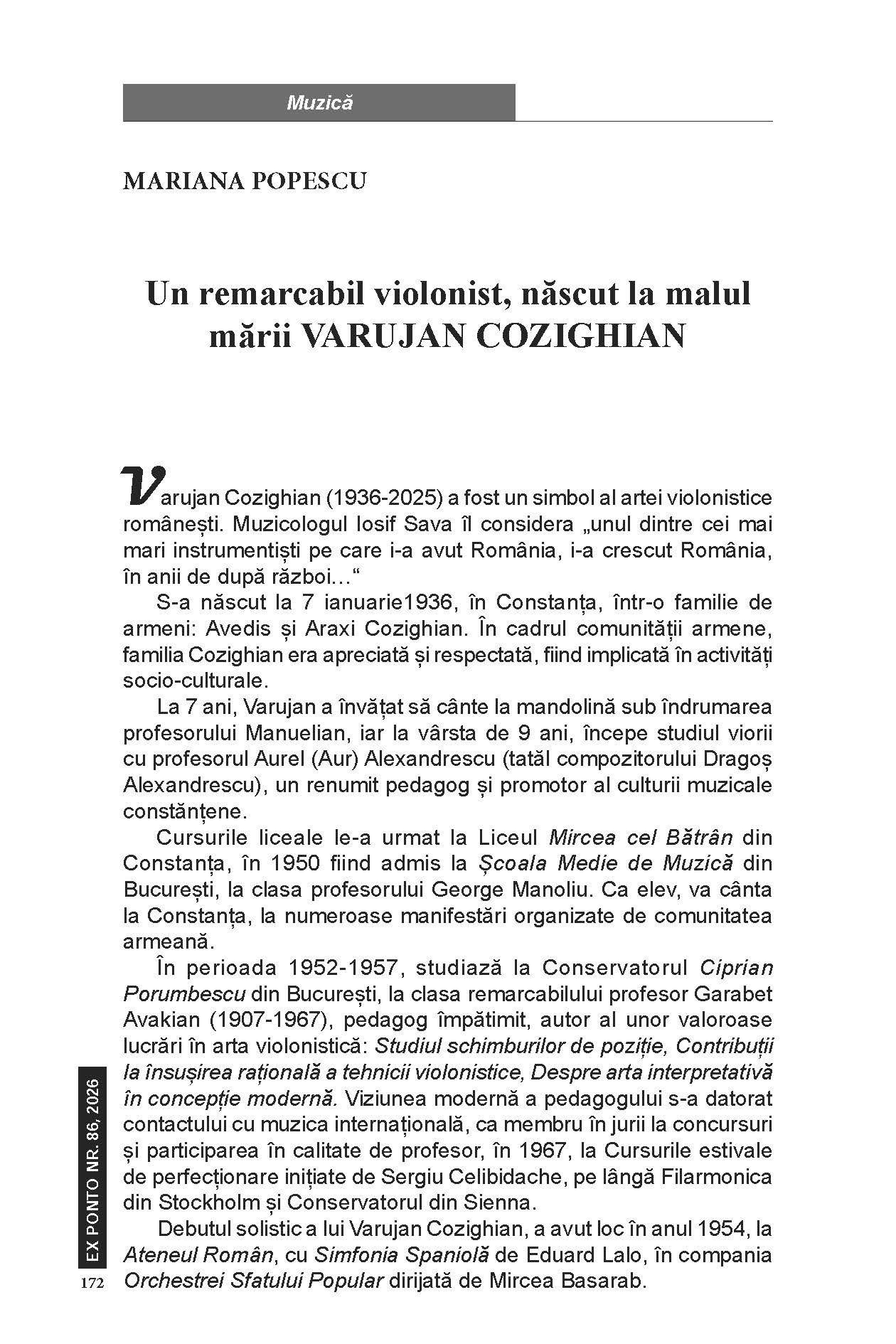 #86 februarie 2026, METATEXT, Muzică Mariana Popescu ‑ Un remarcabil violonist născut la malul mării: VARUJAN COZIGHIAN Anterior Ingrid Petcu Levei, Radu Petcu ‑ Iconografie, credințe și identitate funerară: Mormântul Pictat cu Oranți de la Tomis Mai nou Corina‑Mihaela Apostoleanu. Istorii vechi și noi: lumea între presă și arhive (Lucian Țugui) S-ar putea să-ți placă și Ion Tița ‑ Călin ‑ Tragedia care a salvat Omenirea 26 februarie 2026 Mircea Lungu ‑ N‑ai scris tu, la ziar? 28 februarie 2026 Nic Popescu (Câștigătorul Premiului „Valentin Șerbu“ ‑ Nici moartea nu mai e ce-a fost. Fragment) 26 februarie 2026 Lasă un răspuns Anulează răspunsulAdresa ta de email nu va fi publicată. Câmpurile obligatorii sunt marcate cu *Nume Email Site web Salvează-mi numele, emailul și site-ul web în acest navigator pentru data viitoare când o să comentez. Comentariu Δ