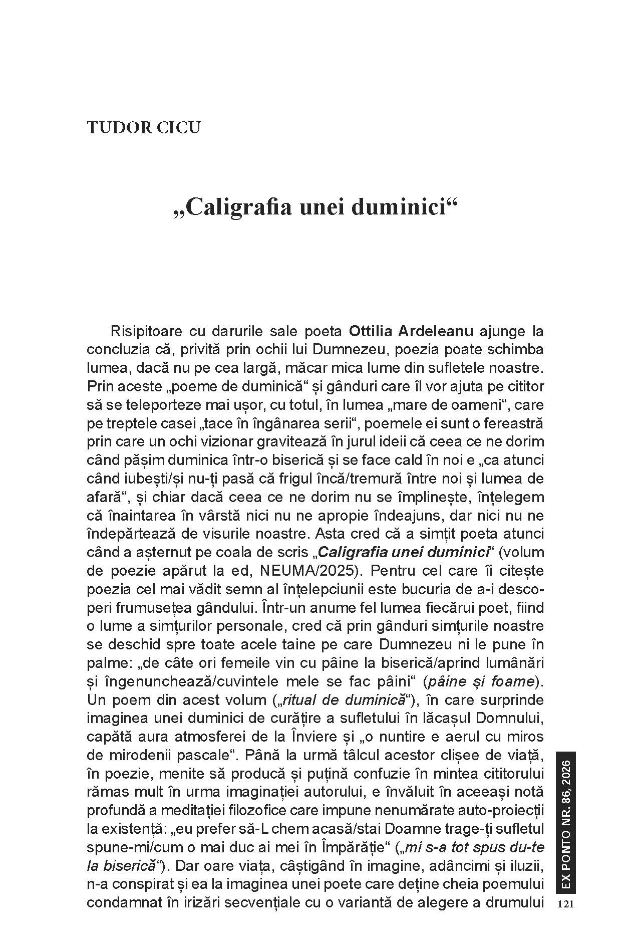 #86 februarie 2026, Comentarii, METATEXT Constantin Miu ‑ Ontologia trecerii și geografia spiritului (Viorel Dinescu) Anterior Tudor Cicu „Caligrafia unei duminici“ (Ottilia Ardeleanu) Mai nou Marina Cușa ‑ Monografia lui Emanoil Bucuța S-ar putea să-ți placă și Ingrid Petcu Levei, Radu Petcu ‑ Iconografie, credințe și identitate funerară: Mormântul Pictat cu Oranți de la Tomis 26 februarie 2026 Gheorghe Șeitan ‑ Între umbră și lumină (Ioan Gheorghiță); Enciclopedia Pustiei ‑ o pledoarie pentru renașterea memoriei arhaice românești (Dan Arhire) 26 februarie 2026 Mihaela Albu ‑ Scriitori români sau scriitori (din) exil? 2 martie 2026 Lasă un răspuns Anulează răspunsulAdresa ta de email nu va fi publicată. Câmpurile obligatorii sunt marcate cu *Nume Email Site web Salvează-mi numele, emailul și site-ul web în acest navigator pentru data viitoare când o să comentez. Comentariu Δ