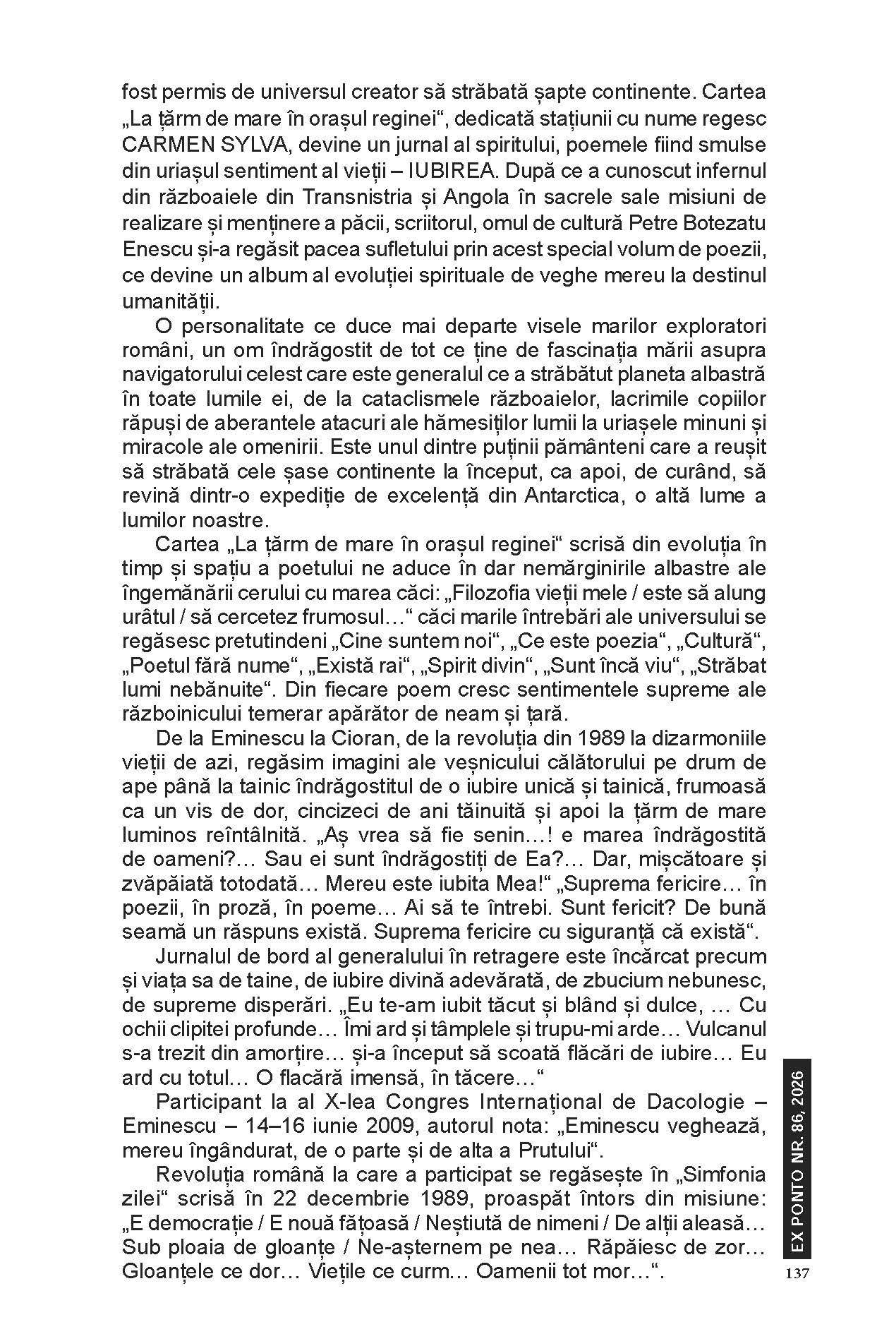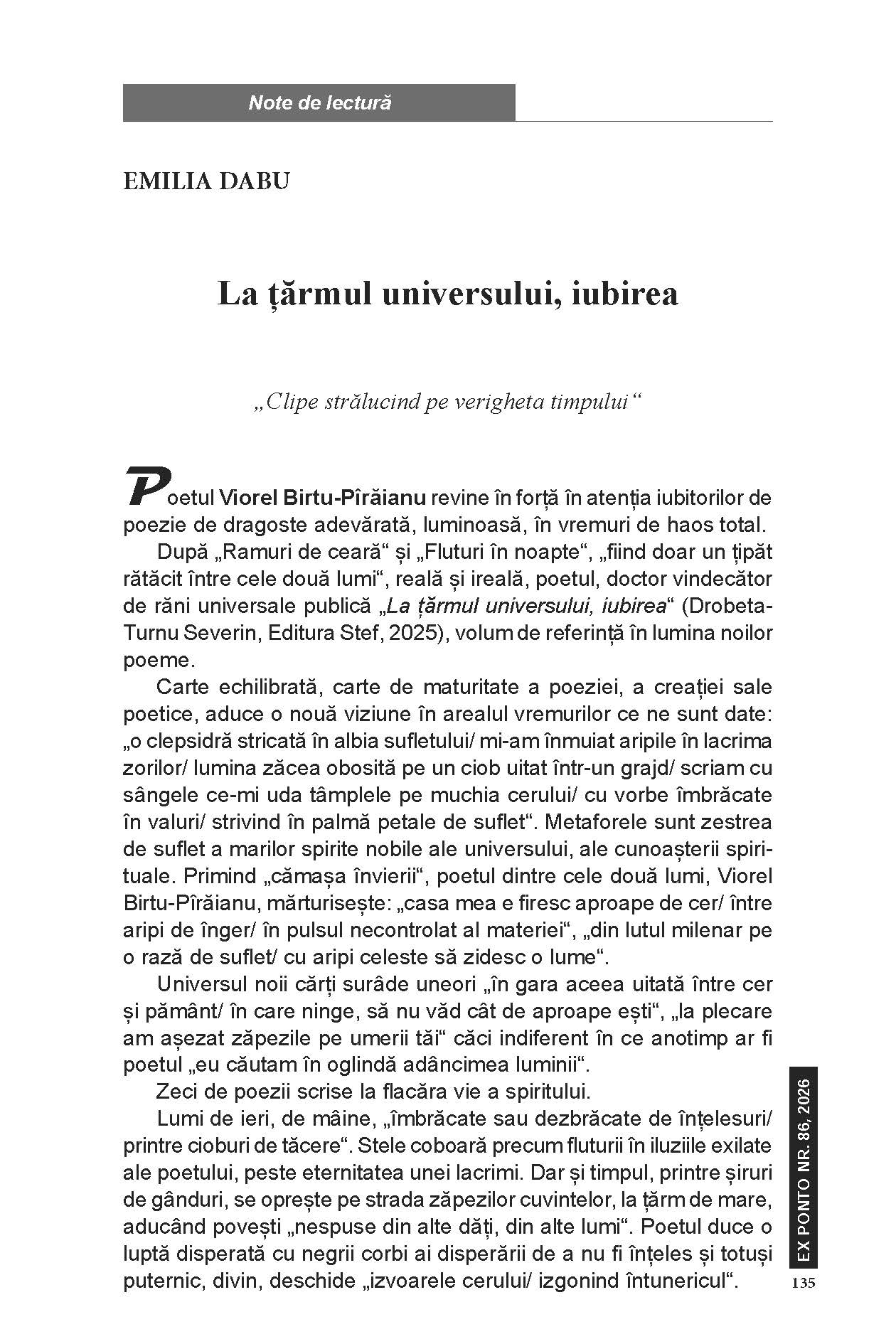 #86 februarie 2026, METATEXT, Note de lectură Emilia Dabu ‑ La țărmul universului, iubirea (Viorel Birtu Pîrâianu); La țărm de mare în orașul reginei. Poezii (Petre Botezatu Enescu) Anterior Florin Alexandru Collombo. O viață tulbure (Vasile Aioanei) Mai nou Răzvan Nicula ‑ Călătorie printre petalele lalelei (Costel Nedelcu) S-ar putea să-ți placă și Anastasia Dumitru ‑ GÜner Akmola.85 Printre elitele interculturale 2 martie 2026 Iulia Pană 28 februarie 2026 Remus‑Valeriu Giorgioni 28 februarie 2026 Lasă un răspuns Anulează răspunsulAdresa ta de email nu va fi publicată. Câmpurile obligatorii sunt marcate cu *Nume Email Site web Salvează-mi numele, emailul și site-ul web în acest navigator pentru data viitoare când o să comentez. Comentariu Δ