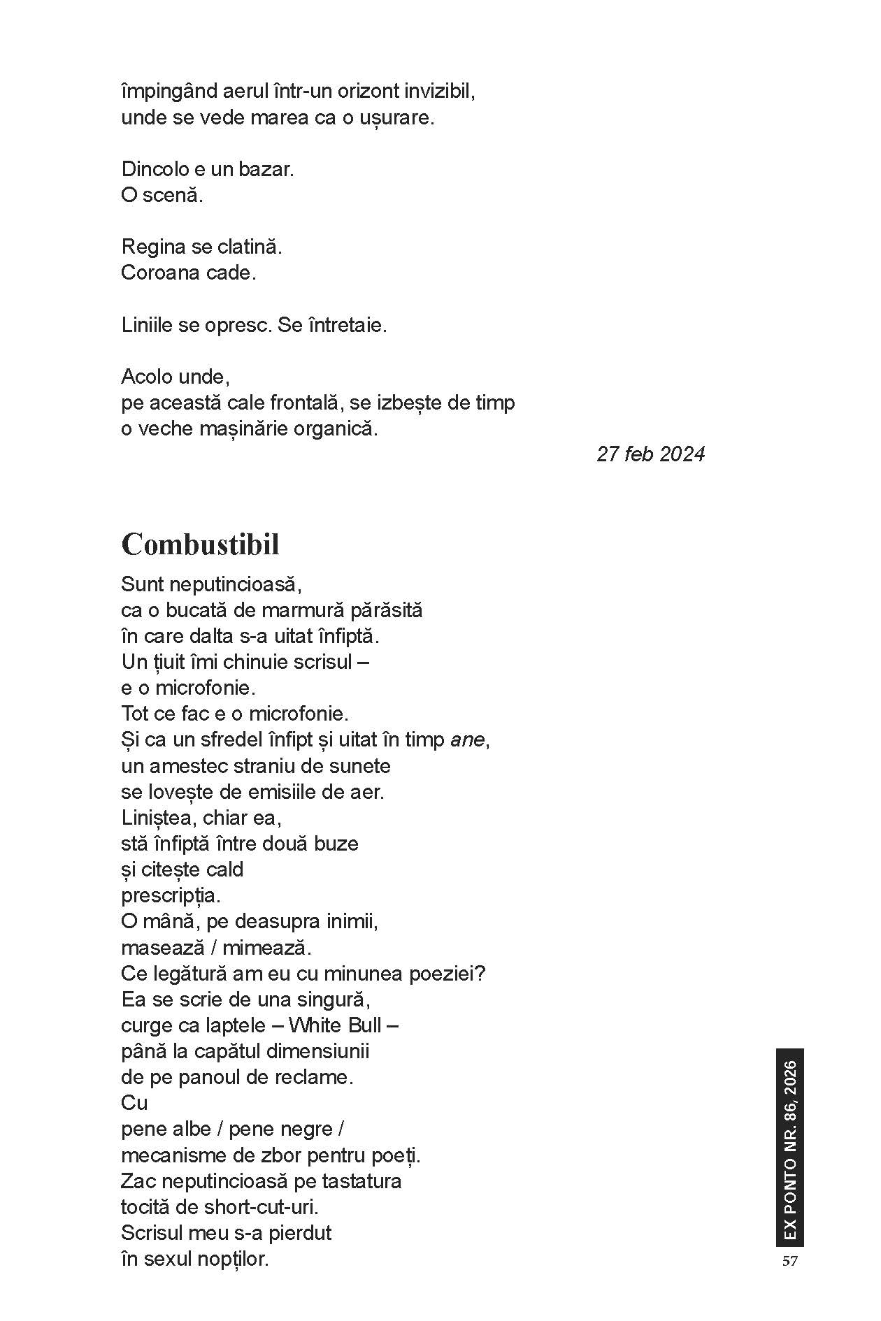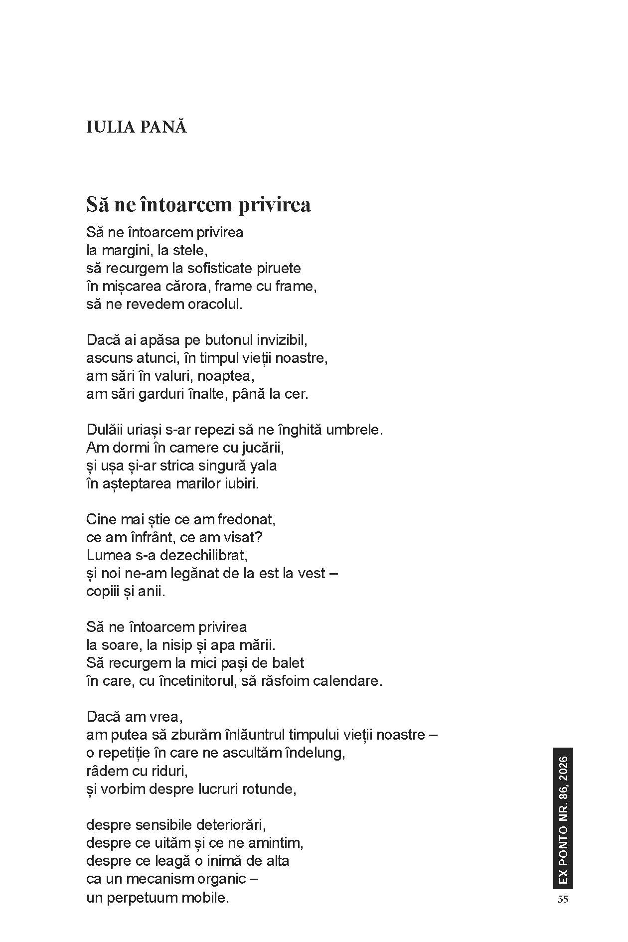 #86 februarie 2026, Poezie, TEXT Iulia Pană Anterior Silvia Bitere Mai nou Remus‑Valeriu Giorgioni S-ar putea să-ți placă și Gheorghe Șeitan ‑ Între umbră și lumină (Ioan Gheorghiță); Enciclopedia Pustiei ‑ o pledoarie pentru renașterea memoriei arhaice românești (Dan Arhire) 26 februarie 2026 Ioan Florin Stanciu 28 februarie 2026 Reviste și cărți primite la redacție 26 februarie 2026 Lasă un răspuns Anulează răspunsulAdresa ta de email nu va fi publicată. Câmpurile obligatorii sunt marcate cu *Nume Email Site web Salvează-mi numele, emailul și site-ul web în acest navigator pentru data viitoare când o să comentez. Comentariu Δ
