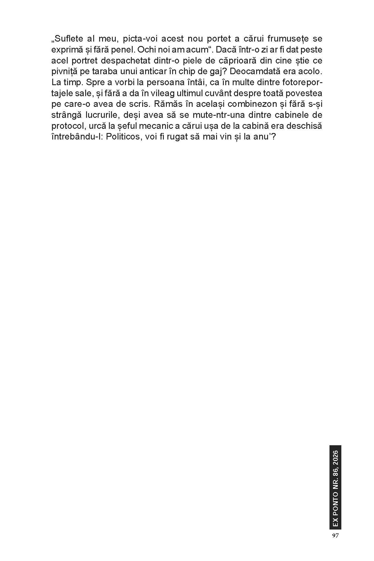 #86 februarie 2026, Proză, TEXT Mircea Lungu ‑ N‑ai scris tu, la ziar? Anterior Constantin Gornea ‑ Fragment din romanul S.F. „A‑E‑IOUA“ Mai nou Diana Dobrița Bîlea ‑ Chipul original (fragment din romanul în lucru) S-ar putea să-ți placă și Corina‑Mihaela Apostoleanu. Istorii vechi și noi: lumea între presă și arhive (Lucian Țugui) 26 februarie 2026 Concursul Național de Proză „Valentin Șerbu“, ediția a IV‑a, Tulcea, iunie‑ septembrie 2025 – Bogdan Pascal 26 februarie 2026 Remus‑Valeriu Giorgioni 28 februarie 2026 Lasă un răspuns Anulează răspunsulAdresa ta de email nu va fi publicată. Câmpurile obligatorii sunt marcate cu *Nume Email Site web Salvează-mi numele, emailul și site-ul web în acest navigator pentru data viitoare când o să comentez. Comentariu Δ